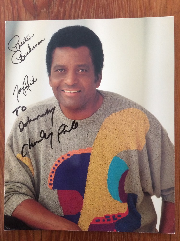 I can remember that it was late afternoon/early evening, and the sun was still hot in the sky, but was nonetheless heading to its resting place for the evening as we walked across the parking lot to the front entry doors of the concert hall. My cousin and I both opened the show house doors for our grandparents. There were some other elderly people who were entering the building just behind U.S. so my cousin and I held the door for some other people coming to see the show; I can remember that there was lots of older people going to see the show and very few young people were in attendance. We entered the building which was airconditioned and much cooler than the outside world. There was a place there in the front area of the building where people could purchase tickets or get a photograph of Charlie Pride to have signed after the show. Our grandfather had purchased the tickets to the show before we had left Idaho, so we did not need to buy tickets, but our grandparents said that they wanted each of U.S. to have one of the souvenir pictures of Charlie Pride so that we could get his signature. Our grandfather bought my cousin and I each one of the Charlie Pride pictures which were not cheap and cost about twenty dollars each to which my grandfather complained about the price and the expense of them, but it had been his idea to get them in the first place and they seemed important to him and my grandmother, more so than to my cousin and I. We entered the concert hall and found seats on the left side facing the stage toward the center of the room. The show house was a light hum of excitement from all of the people sitting and talking quietly amongst themselves before the show. When the show began most of the lights in the room went out and/or focused on the stage area of the room. The curtains opened and Charlie and his band started performing their brand of country western style hits for all the folks there in the crowd.